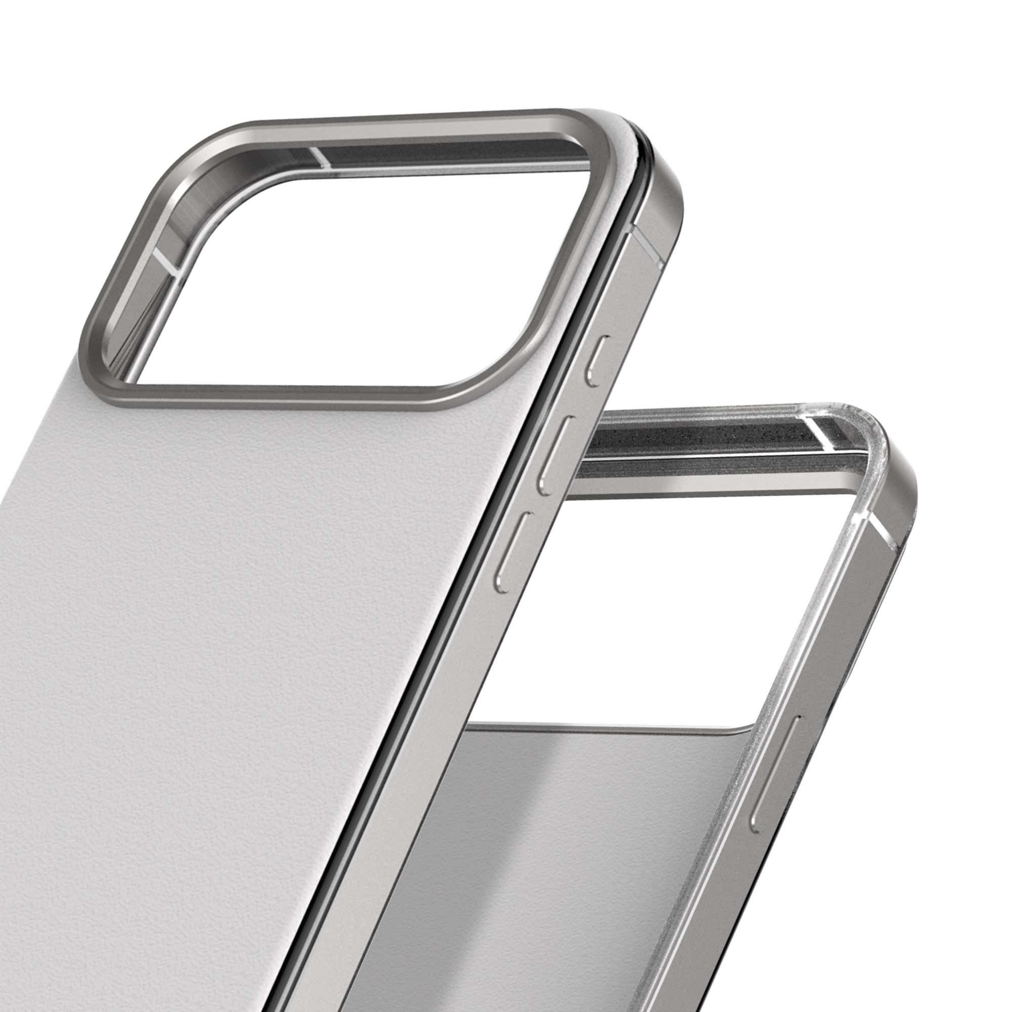 framed bumper, bezel, and buttons.