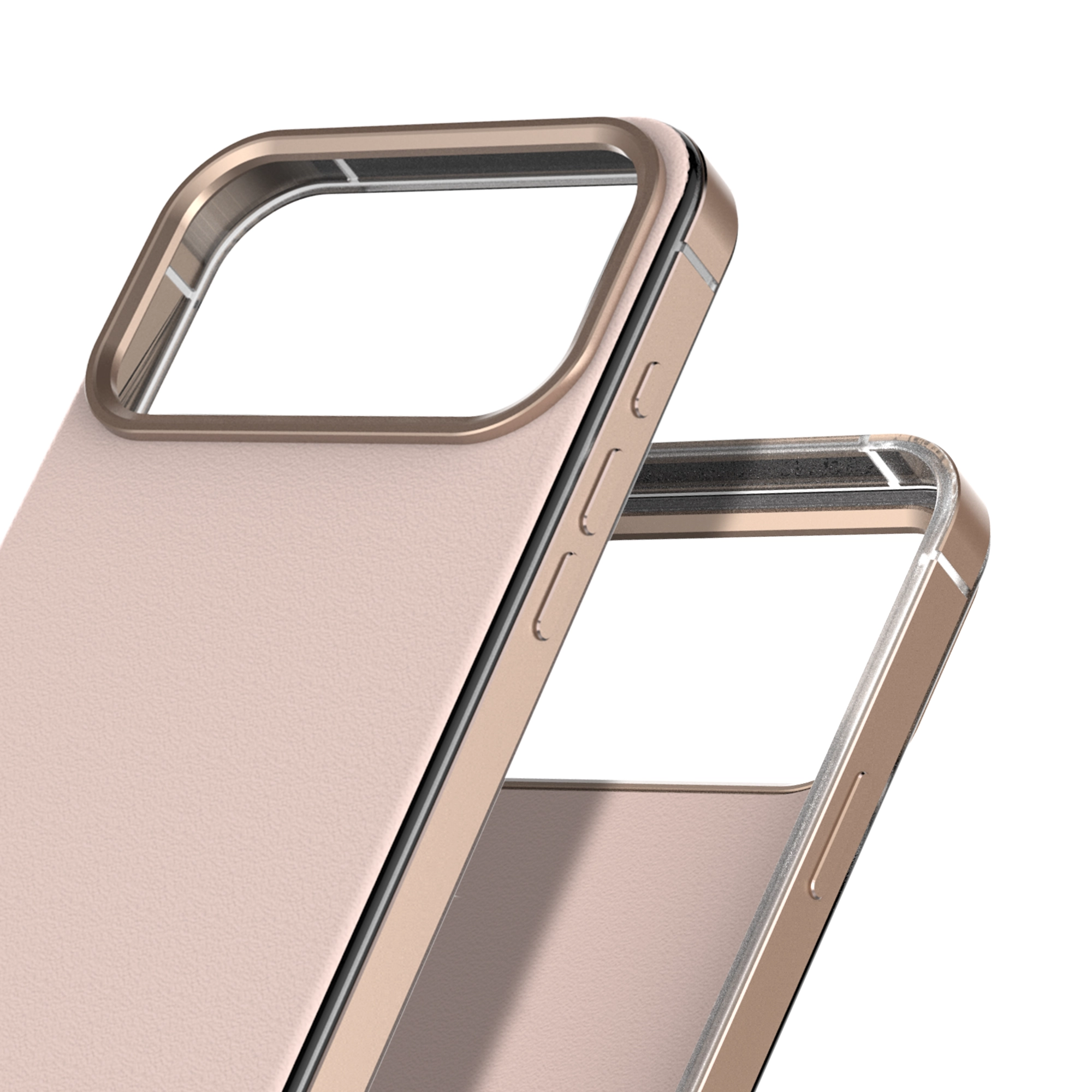 framed bumper, bezel, and buttons.